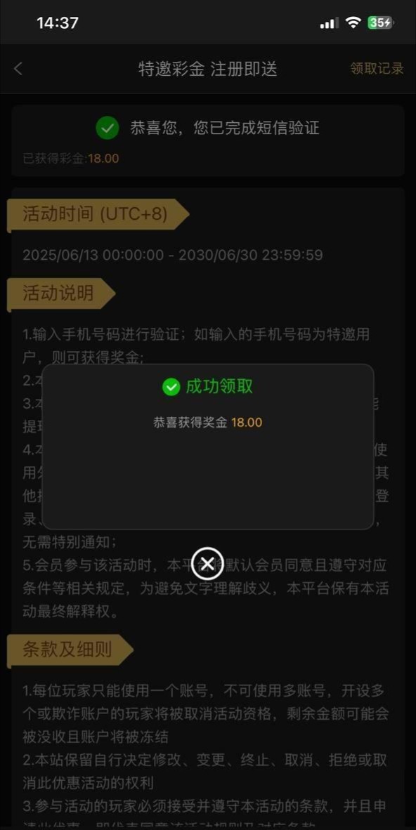 新用户注册下载绑定钱包,优惠中心手机号自助验证,领18,出款自测